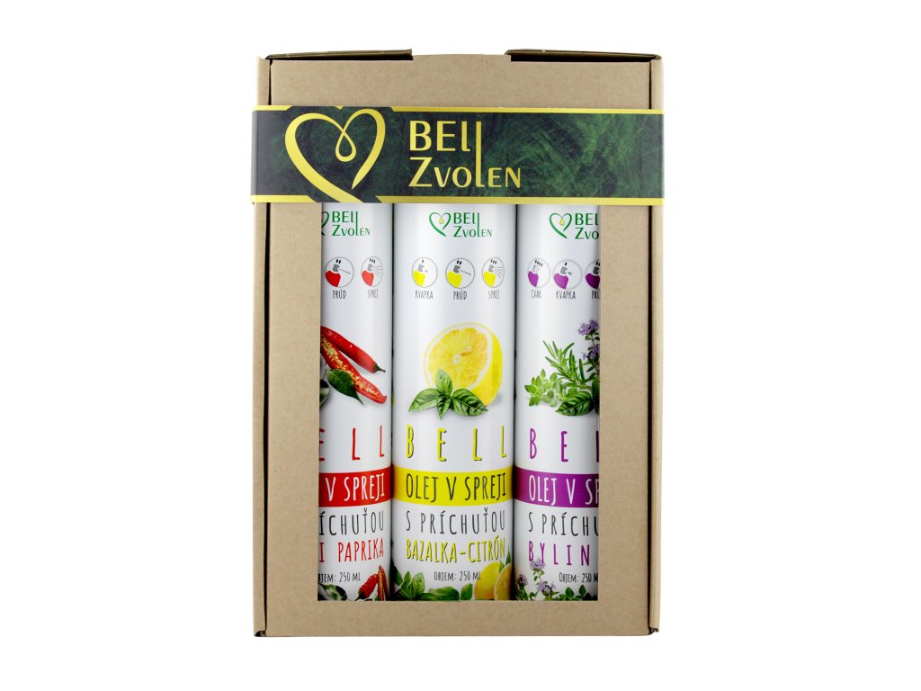 „Trio príchutí“ – darčekové balenie olejov v spreji – bazalka-citrón, bylinky, chilli